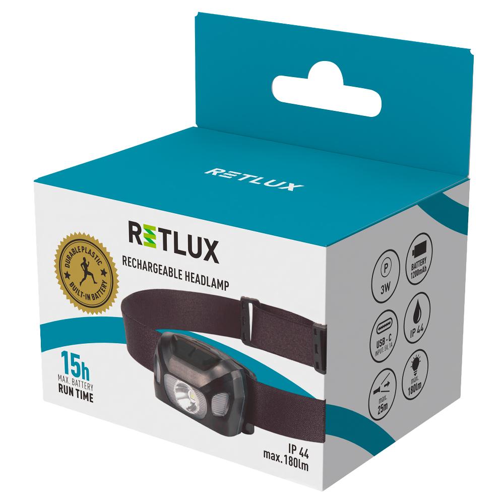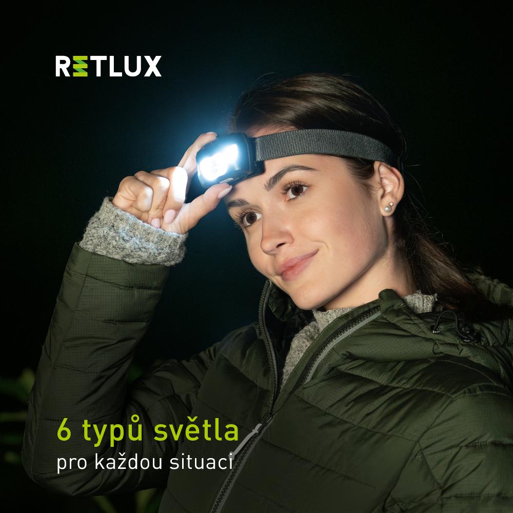 Hledáte spolehlivé světlo, které budete mít vždy po ruce, nebo spíš na hlavě? Nabíjecí čelovka Retlux RPL 709 s nabíjením přes USB-C je vybavená vestavěným akumulátorem o kapacitě 1 200 mAh, takže ji snadno nabijete za 4–5 hodin a získáte až 10 hodin svícení.
