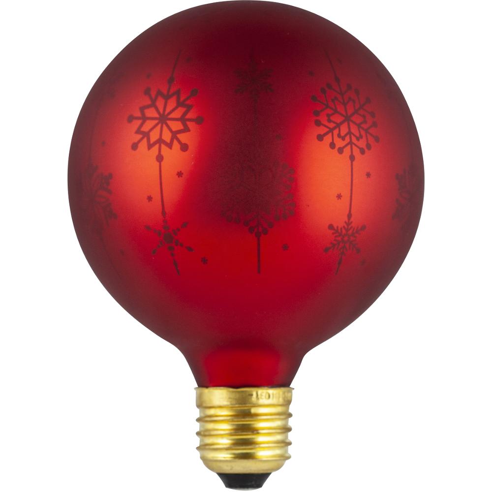 LED žárovka červená s laserovým gravírováním s vánočními motivy. Ideální pro vykouzlení té pravé vánoční atmosféry.