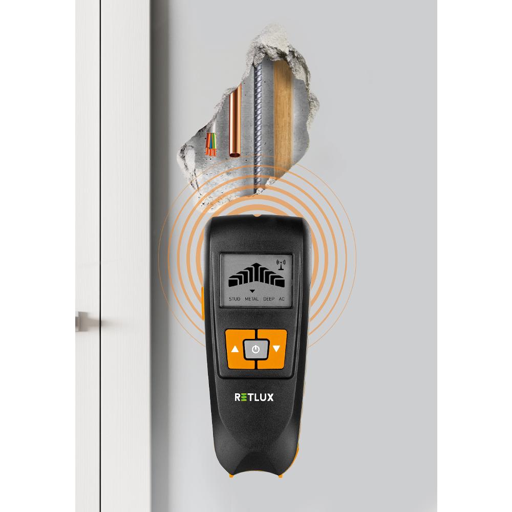 Každý z nás někdy něco hledá. Vzpomíná, kde by to mohl položit nebo kam uklidit. Ale jak najít něco, co není vidět a navíc je to schované kdesi ve stěně pod omítkou. Pak se stává navrtání háčku, úprava bytu nebo domu dobrodružstvím, které vám může nadělatspoustu starostí a problémů. Abychom se vyhnuli těmto problémům a efektivně a jednoduše našli kovové a dřevěné prvky, kabelové vodiče, nebo dutiny ve zdivu, poslouží nám k tomu detektor. RDT 100 je nový ruční detektor od RETLUXU , který pomůže vyhledat tyto skryté prvky ve vaší stěně. Dřevo, kov, vodiče pod napětí nebo dutiny najde tento malý pomocník s velkou přesností. Ušetří vám náklady na práci, opravy a zvýší bezpečnost vašich rekonstrukcí, nebo úprav interiéru. Multidetektor RDT 100 je navržen pro zaměřování dřeva do hloubky 25 mm, kovu do hloubky 40 mm a vodičů pod napětím do hloubky 70 mm. S jeho pomocí snadno odhalíte skryté nástrahy a ušetříte si případné problémy při vrtání. Vhodné pro kutily, rekonstrukce, novostavby atd. Přehledný displej, ergonomický design, jednoduché a intuitivní ovládání.