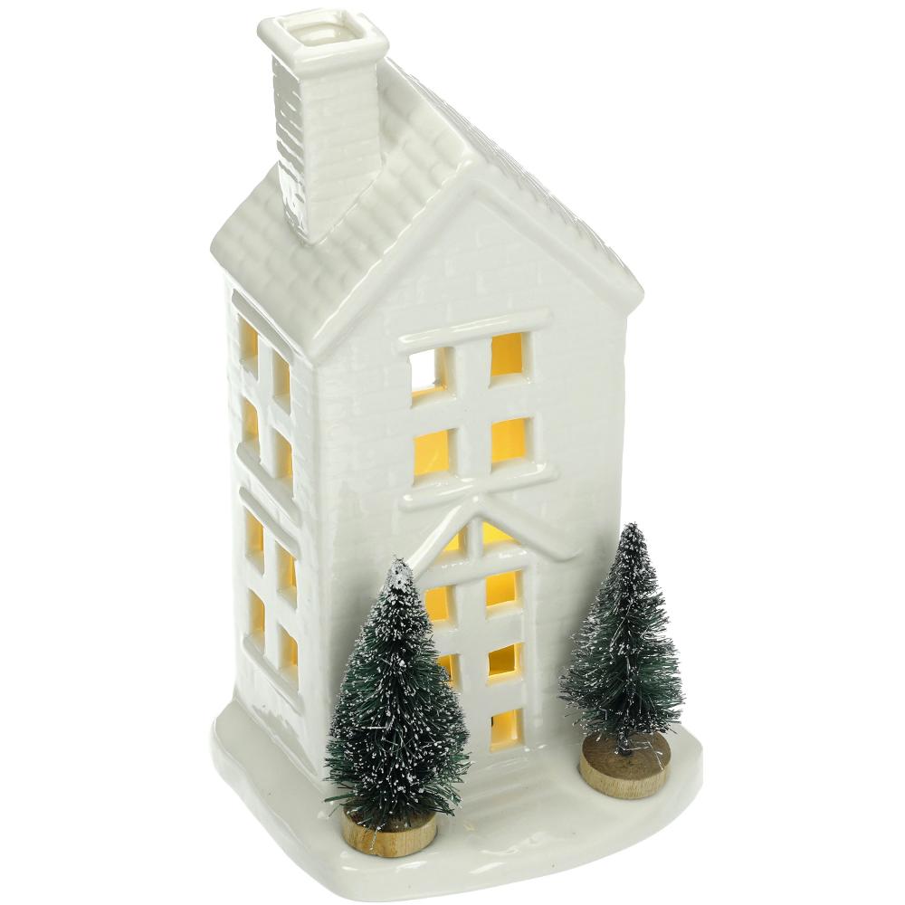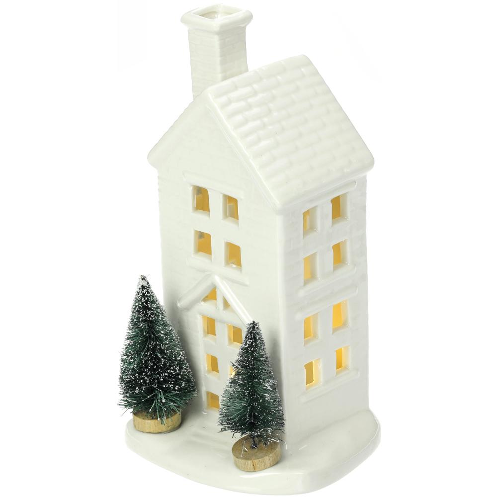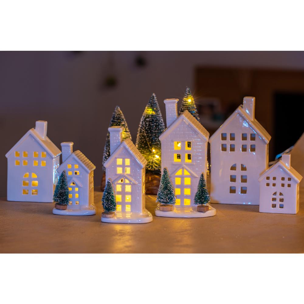 Pokud dáváte přednost dekoracím, u kterých můžete klidně i usnout bez obav, že jste zapomněli sfouknout svíčku, určitě vás potěší naše nabídka keramických domečků se zabudovaným LED světýlkem. Ty jsou dozdobeny i malými zasněženými stromečky, které domečkům dodávají krásný zimní nádech.