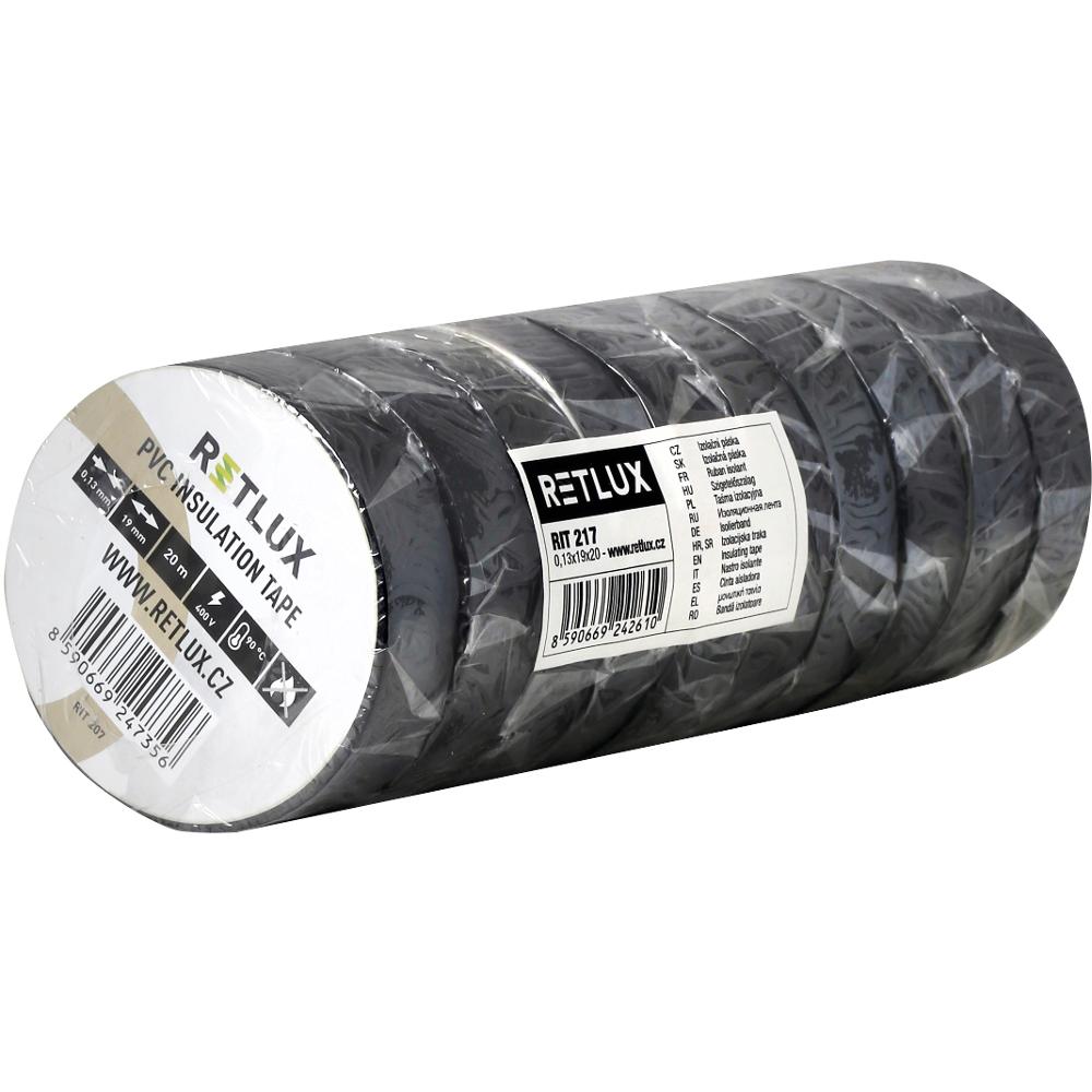 Izolační páska RETLUX je vyrobena z PVC, šírkou 19mm a délkou návinu 20 metrů. Má vysokou elektrickou pevnost v tahu, zaručuje vodotěsnost spoje a vyhovuje všem potřebným normám. Balení obsahuje vždy deset kusů kotoučů pásek.