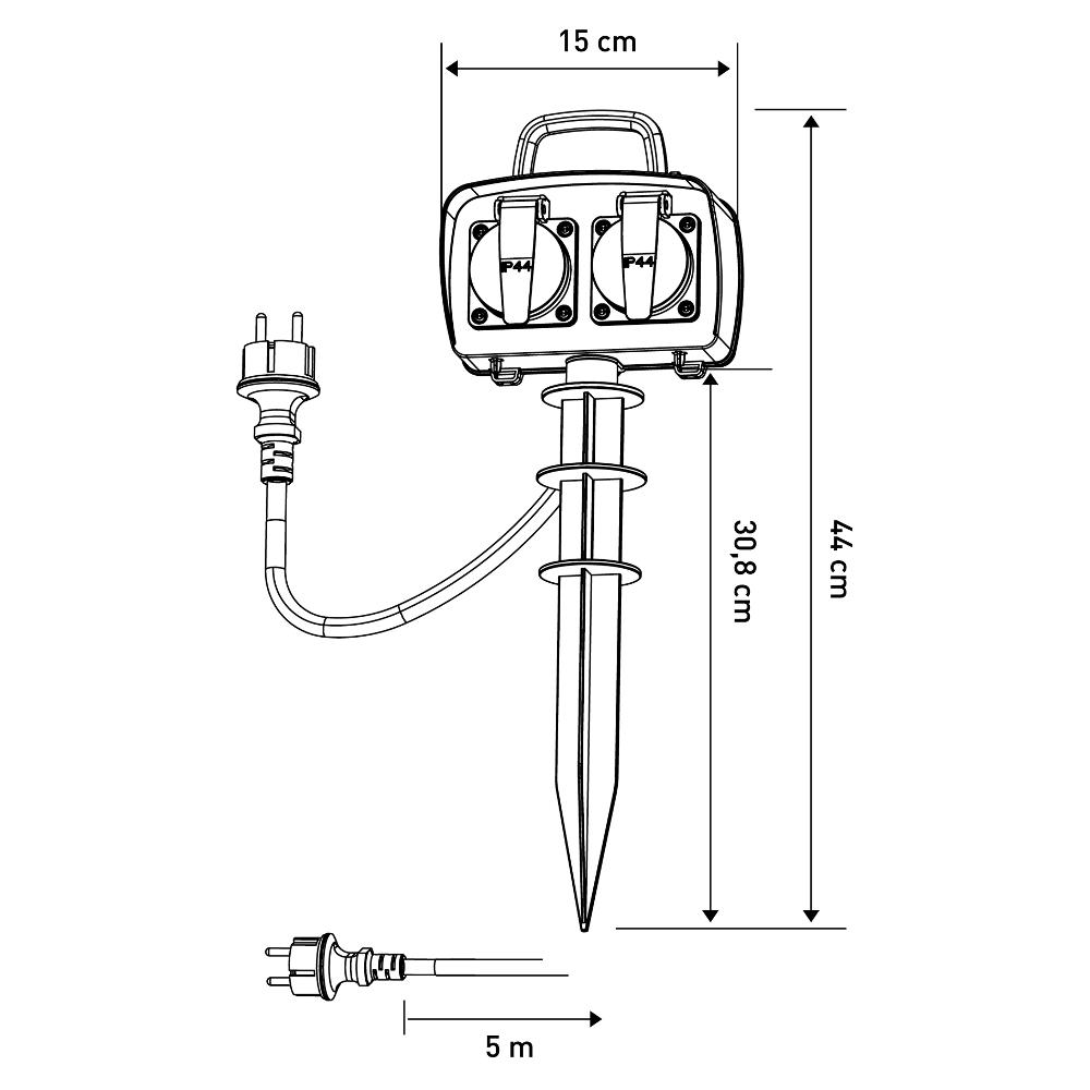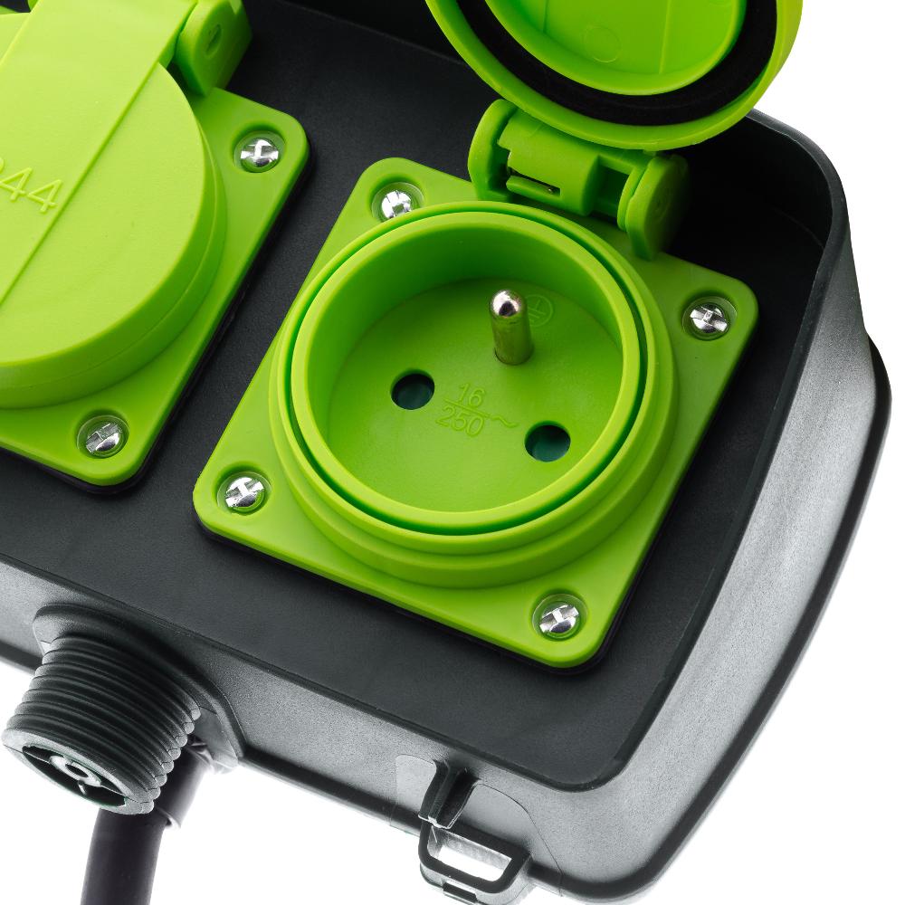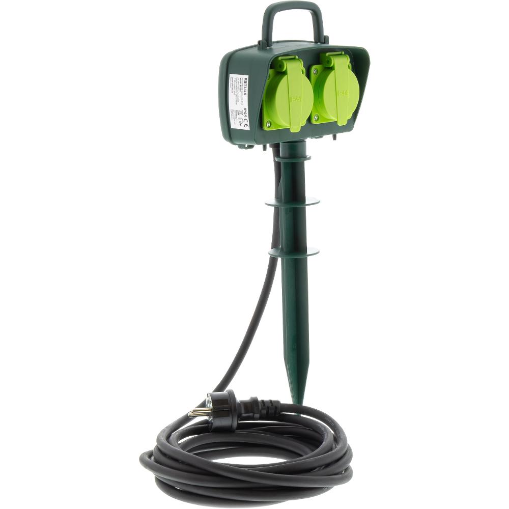 Venkovní zahradní a pracovní zásuvky RETLUX přináší bezpečné a kvalitní řešení pro Vaši dílnu nebo zahradu. Varianta RPC 200 je vyrobena z kvalitních plastů vhodných pro venkovní použití. Je osazena 5 metrů dlouhým vodičem o průřezu 3x1,5mm2 s gumovou izolací, který umožňuje maximalní zatížení až 16A / 3680W. Díky krytkám obou zásuvek splňuje stupeň krytí IP44, který je vhodný a bezpečný pro venkovní použití. Zásuvky jsou vybaveny plastovým zapichovacím trnem pro jednoduchou instalaci na vaší zahradě.