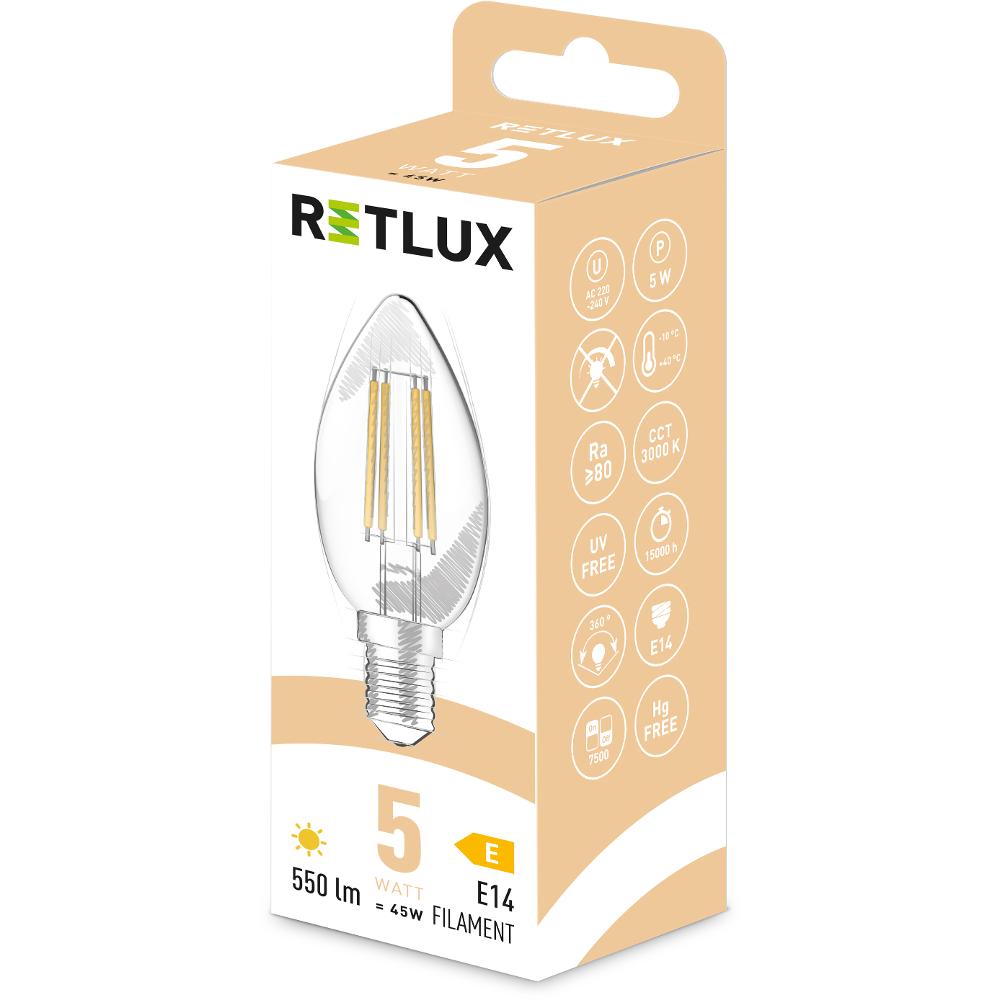 LED žárovky s filamentovým vláknem přinesou do vaší domácnosti originální a designové svícení s příjemnou teplotou světla. V klasickém kabátku se skrývají moderní LED technologie a napájecí elektronika, která potěší nízkou spotřebou, vysokou výdrží a svítivostí. Tato filament žárovka má klasický tvar svíčky s paticí E14.