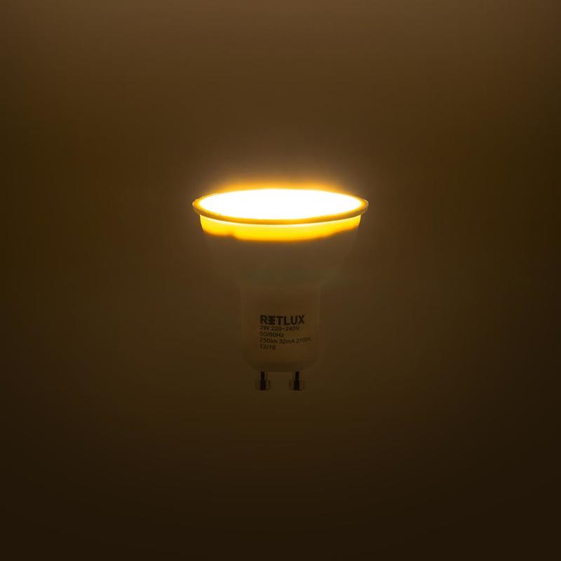 Reflektorové LED žárovky Retlux do patice GU10 se používají nejčastěji v podhledech, bodových světlech či v koupelnách. Jedná se o menší žárovky, které spolehlivě osvítí menší plochu či ve větším množstvím i rozměrnější místnost. Na výběr máte hned několik variant od 3 W do 9 W, což by u běžných žárovek znamenalo 25 W až 50 W.