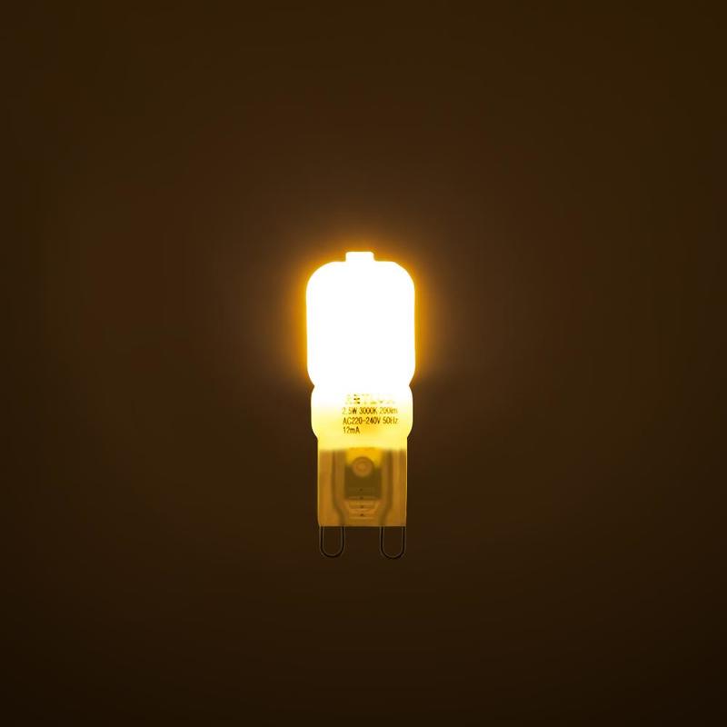 Žárovky s paticí G9 jsou bez šroubového závitu, podobně jako například patice GU10. Mají dva kolíčky, kterými se zacvaknou do svítidla. V patici se žárovka sama zaaretuje. Jedná se o každopádně o nejmenší používaný rozměr žárovek s napětím 230 V. Nejčastěji se používá v podhledech, bodových světlech WC, nebo či koupelně. Jak je vidět na parametrech, malý rozměr rozhodně nemusí být překážkou pro pořádnou porci světelného toku.