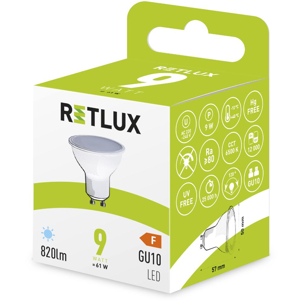 Reflektorové LED žárovky Retlux do patice GU10 se používají nejčastěji v podhledech, bodových světlech či v koupelnách. Jedná se o menší žárovky, které spolehlivě osvítí menší plochu či ve větším množstvím i rozměrnější místnost. Na výběr máte hned několik variant od 5 W do 9 W, což by u běžných žárovek znamenalo 37 W až 61 W.