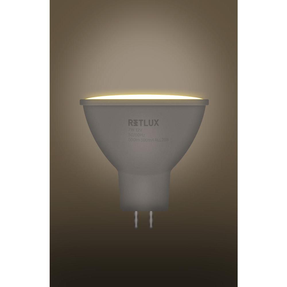 LED žárovka Retlux RLL 420 GU5.3 má výkon 7 W a je vhodná do patice GU 5.3. Svítí teplou bílou o teplotě 3000 K. Světlo je tak nejenom příjemné na pohled, ale hlavně je přirozené i pro vaše oči. Nezaostává však ani svítivostí. Celých 660 lm prozáří pracovní stůl nebo i malou místnost. V lustru s dalšíma dvěma pak zcela bez problémů prosvítí i obývací pokoj. Životnost žárovky je přes 25 000 hodin.