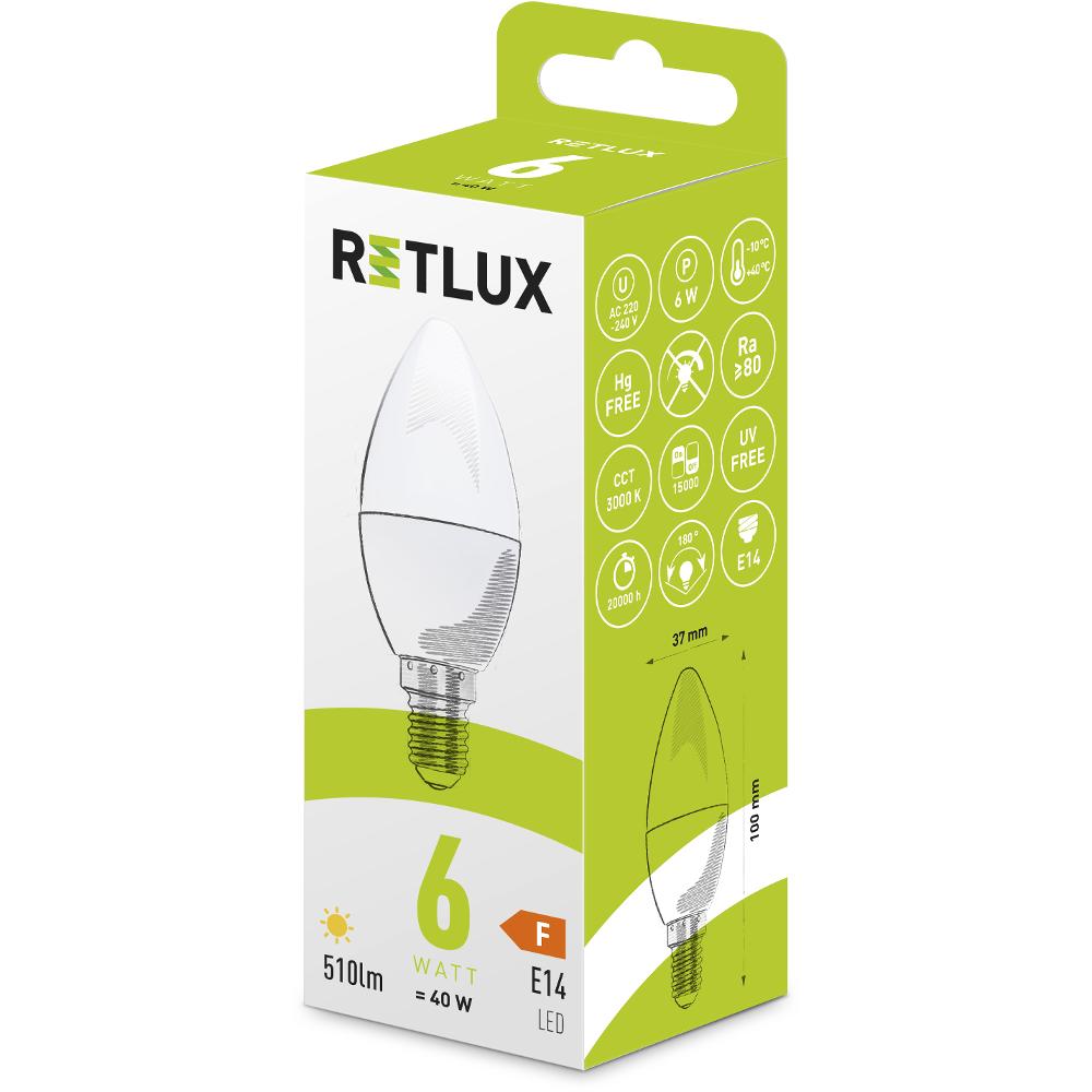 Žárovky ve tvaru svíček najdou dozajista uplatnění v ozdobných lustrech, závěsných svítidlech či např. v lampách. Tento již léty osvědčený tvar se však dočkal technologického pokroku. Retlux LED žárovky do patice E14 mají násobně menší spotřebu než její předchůdkyně, a vynikají rovněž vysokou životností, která se pohybuje v řádech desítek tisíc hodin.