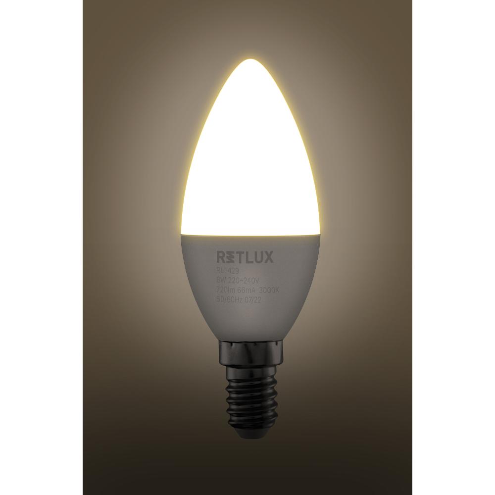 Žárovky ve tvaru svíček najdou dozajista uplatnění v ozdobných lustrech, závěsných svítidlech či např. v lampách. Tento již léty osvědčený tvar se však dočkal technologického pokroku. Retlux LED žárovky do patice E14 mají násobně menší spotřebu než její předchůdkyně, a vynikají rovněž vysokou životností, která se pohybuje v řádech desítek tisíc hodin.