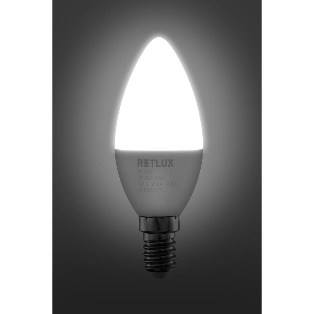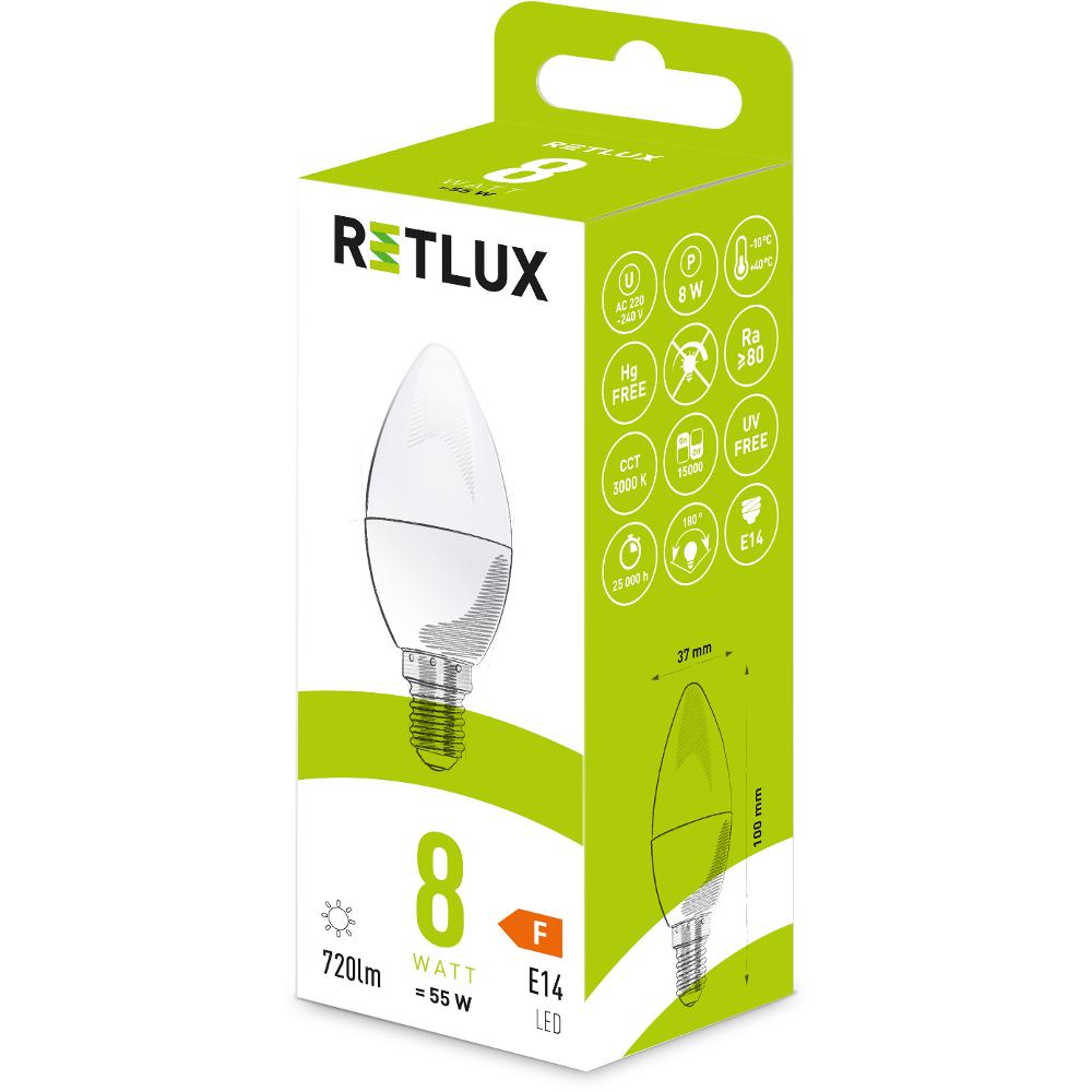 Žárovky ve tvaru svíček najdou dozajista uplatnění v ozdobných lustrech, závěsných svítidlech či např. v lampách. Tento již léty osvědčený tvar se však dočkal technologického pokroku. Retlux LED žárovky do patice E14 mají násobně menší spotřebu než její předchůdkyně, a vynikají rovněž vysokou životností, která se pohybuje v řádech desítek tisíc hodin.