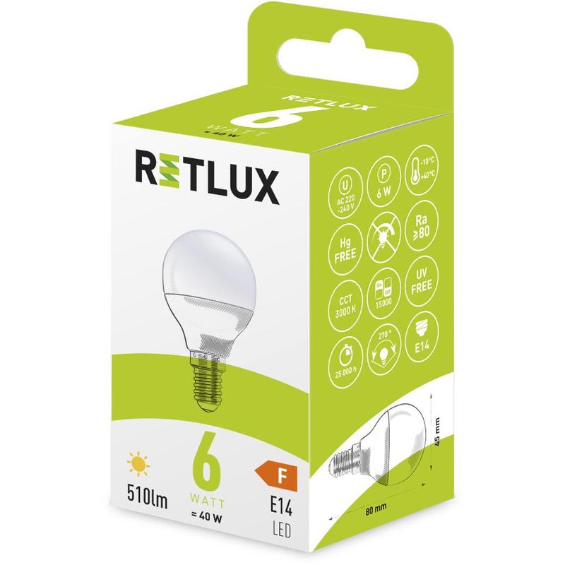 Vysoká svítivost ukrytá v malém těle. Kompaktní žárovky řady Retlux Mini Globe vynikají nízkou spotřebou a dlouhou životností. Minimální výdrž je alespoň 20 000 hodin, což vychází zhruba na dva a čtvrt roku nepřetržitého svícení. V běžné praxi však svítíme mnohem méně, takže vám tyto žárovky vydrží opravdu několik let.