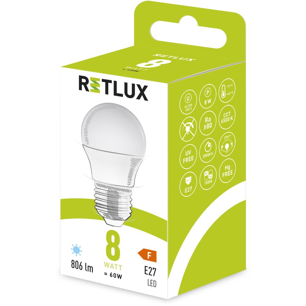 Vysoká svítivost ukrytá v malém těle. Kompaktní žárovky řady Retlux Mini Globe vynikají nízkou spotřebou a dlouhou životností. Minimální výdrž je alespoň 25 000 hodin, což vychází zhruba na téměř tři roky nepřetržitého svícení. V běžné praxi však svítíme mnohem méně, takže vám tyto žárovky vydrží opravdu několik let.