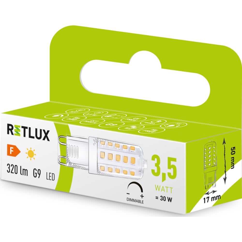 LED žárovka, příkon 3,5 W, patice G9, 3000K teplá bílá, světelný tok 320 lm, životnost 15000 h