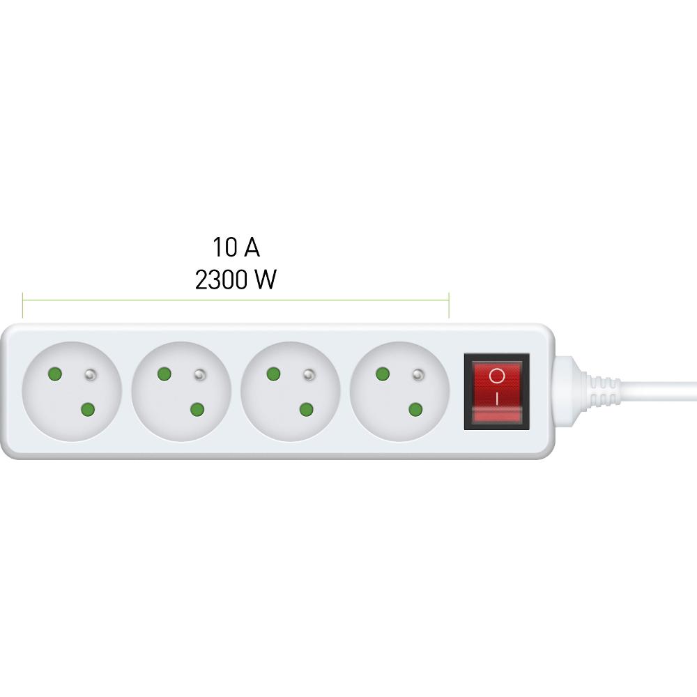 Prodlužovací přívod s vypínačem, 4 zásuvky, délka 2 m
