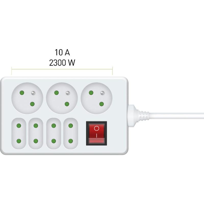 Prodlužovací přívod s vypínačem, 4+3 zásuvky, délka 3 m