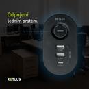 3x zásuvka s bezpečnostní clonkou + 1 USB-C + 2 USB-A