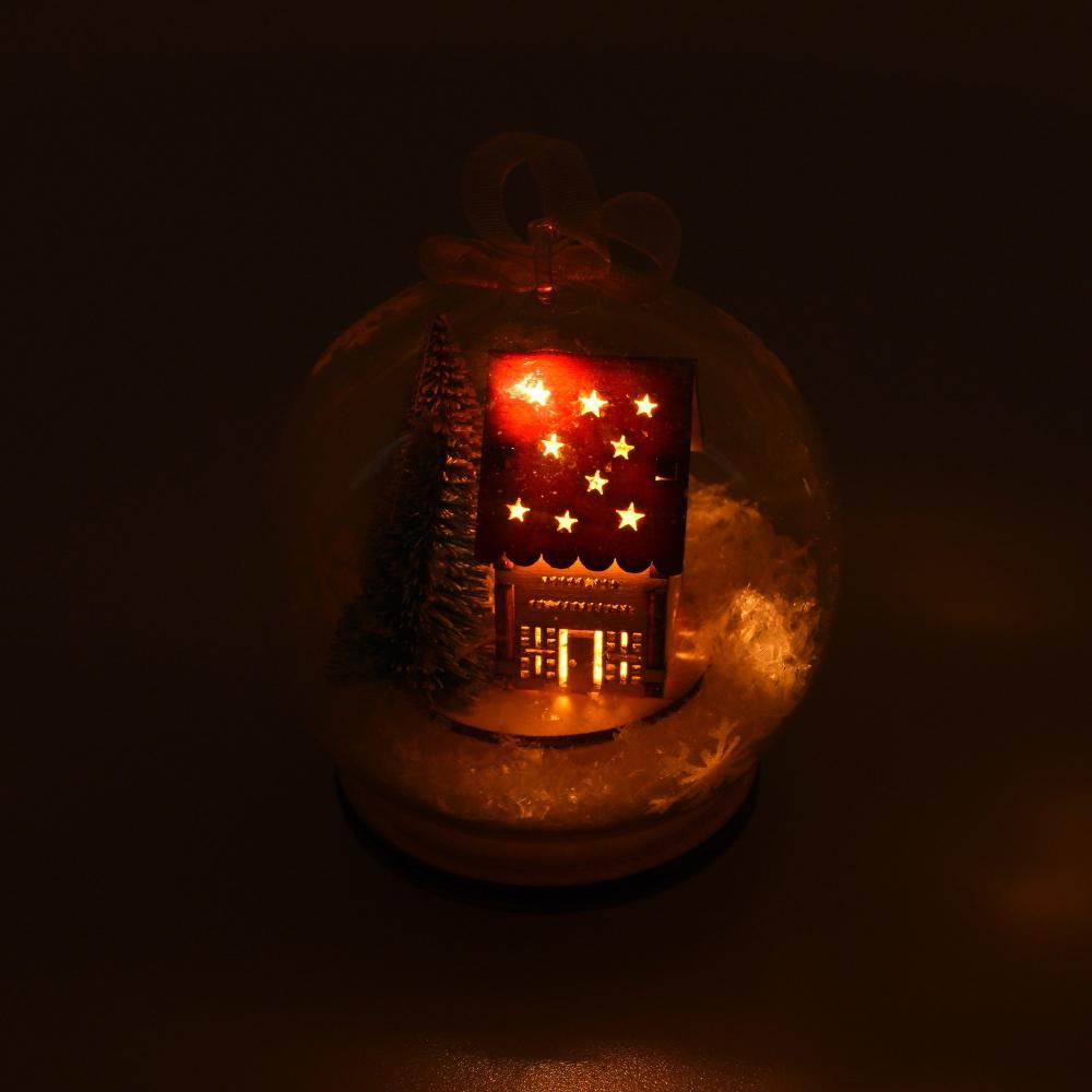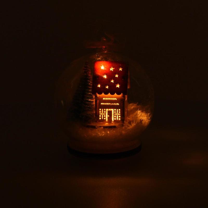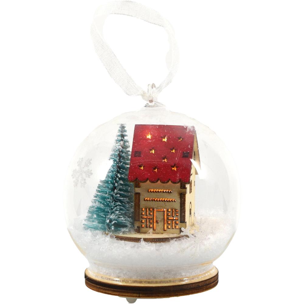 Skleněná ozdoba s dekorem "dům" a umělým sněhem