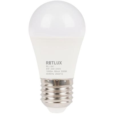 LED žárovka, G45 mini globe 8 W, patice E27, 3000K teplá bílá, světelný tok 1080 lm, životnost 25000 h