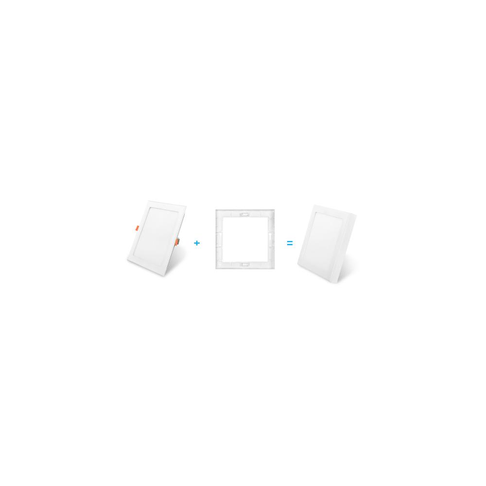 Přisazené i vestavné vnitřní svítidlo typu LED-panel. Pro přisazenou montáž je určen plastový rámeček (součást balení), pro zápustnou montáž se rámeček nepoužije.