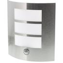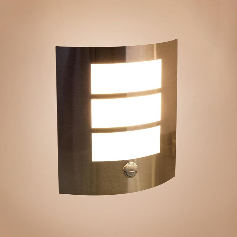 Univerzální venkovní svítidlo s klasickou objímkou E27 a pohybovým senzorem. Nerez provedení zaručuje dlouhou životnost svítidla. Svítidlo je plně kompatibilní s LED a úspornými žárovkami.