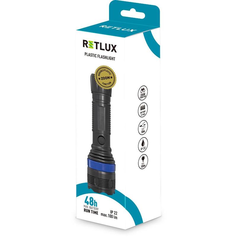 Svítilna má funcí zoom díky, které si světelný paprsek upravíte podle Vašich požadavků. Dále je svítilna vybavena 3 módy svícení. 100% (100lm) - 50% (50lm) - stroboskop.