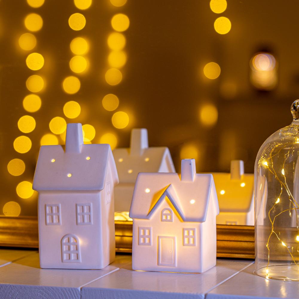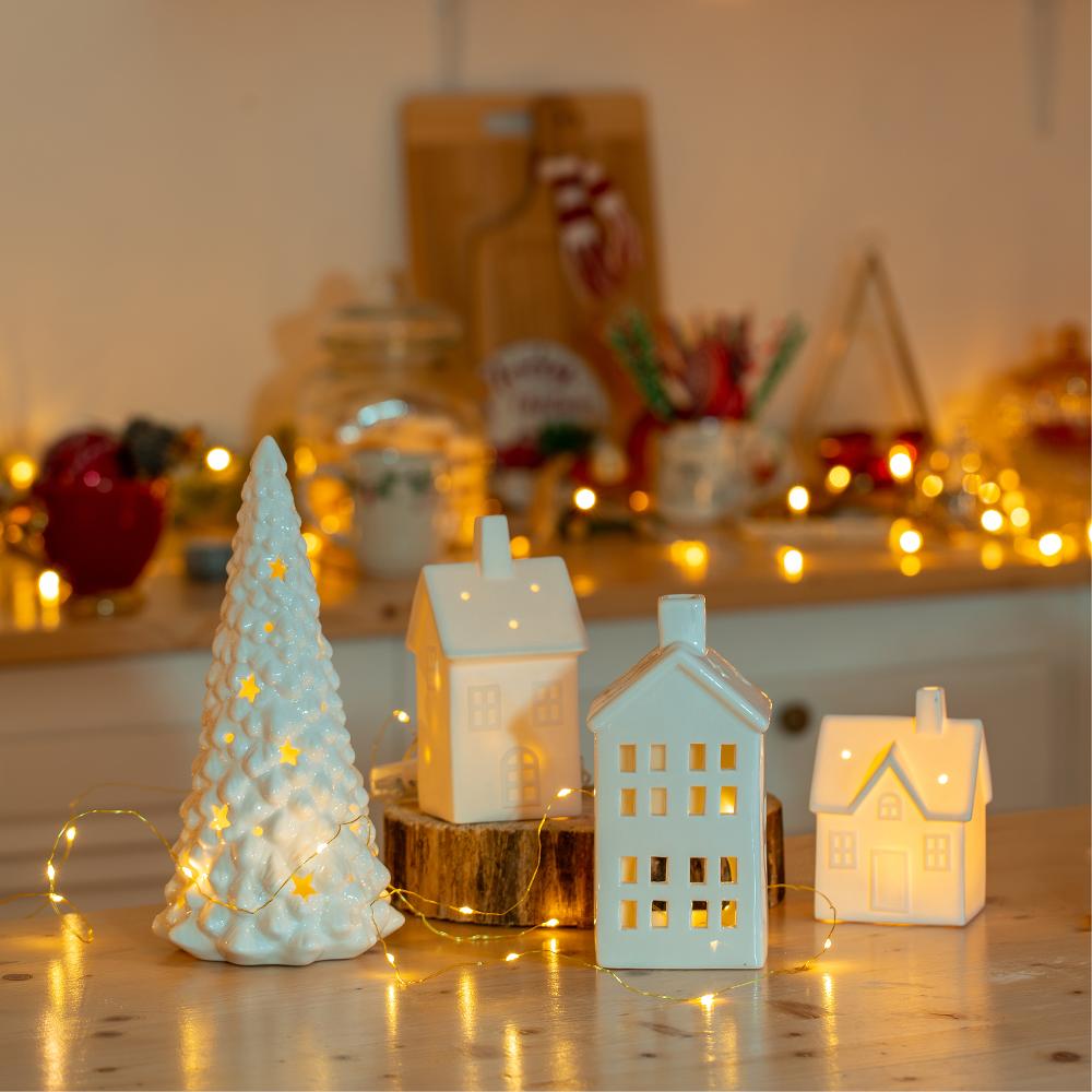 Vytvořte si útulnou vesničku i u vás doma. A jak? Velmi jednoduše, využijte naše keramické domečky, které patří mezi neoblíbenější vánoční dekorace. Vložíte do nich čajovou svíčku a okamžitě se z nich stane krásná dekorace plná teplého světla.