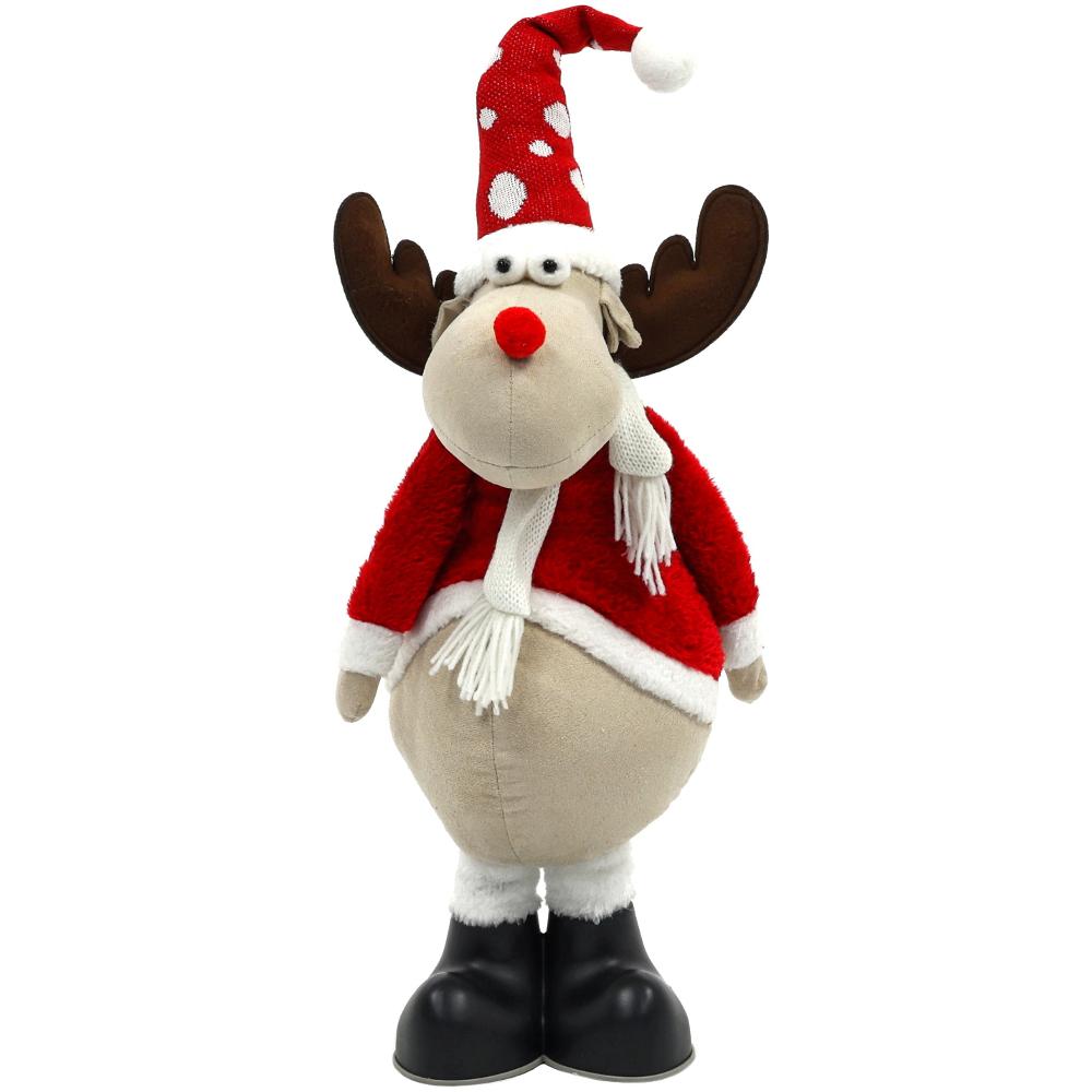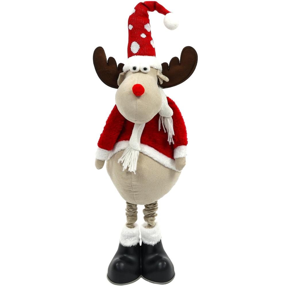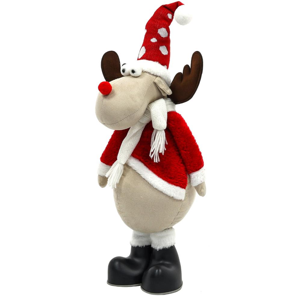 Plyšoví sobi již k Vánocům patří. Rozveselí vaši výzdobu a tím, že jsou z plyše mohou vyzdobit i dětský pokojíček. Můžete vybírat z různých dekorů a velikostí. Tento sob má vysouvací nohy a dosahuje výšky 138 cm.
