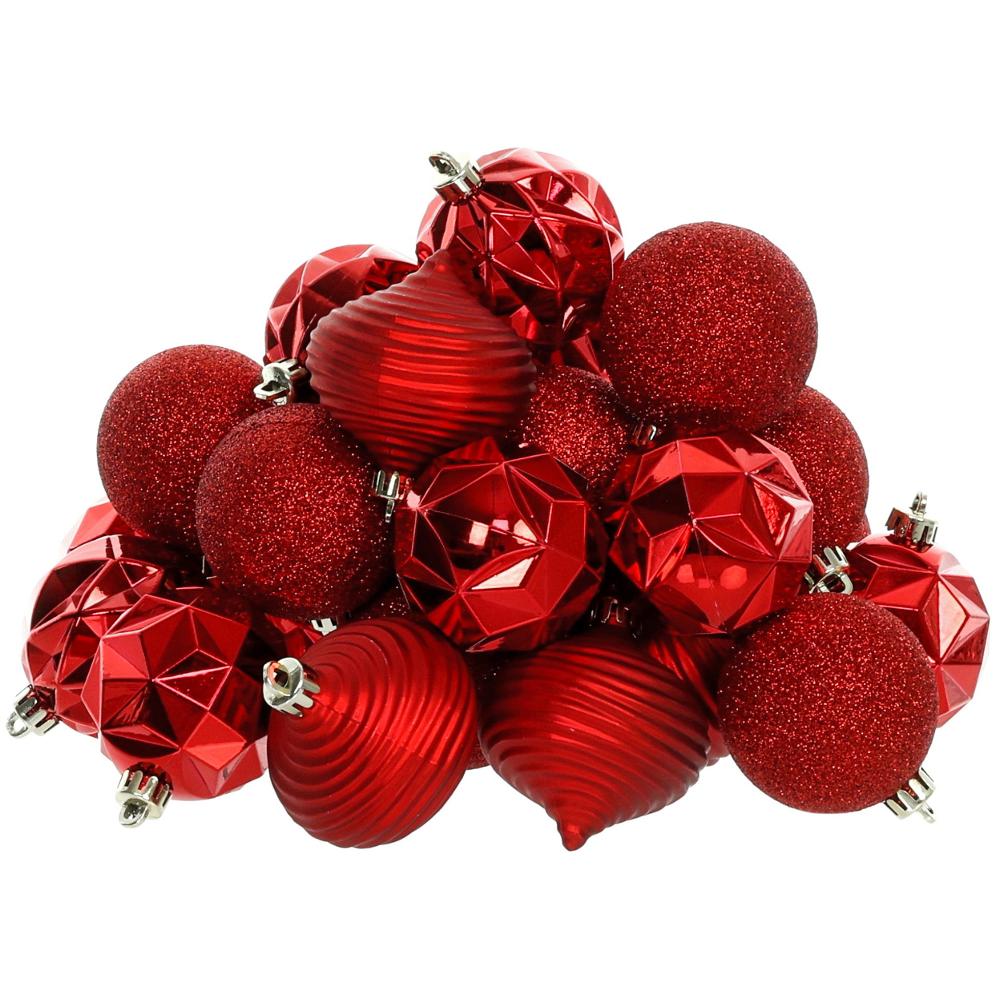 Sada 30 kusů vánočních ozdob v tradiční červené barvě