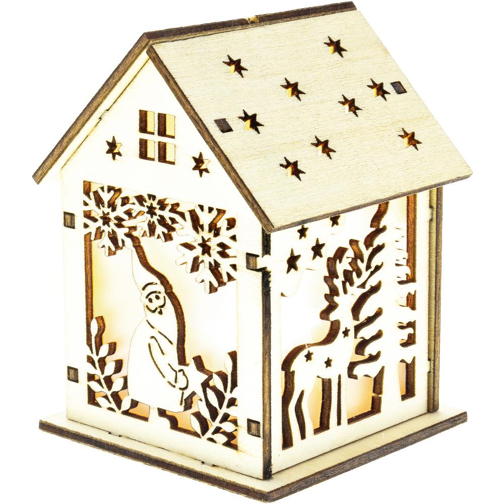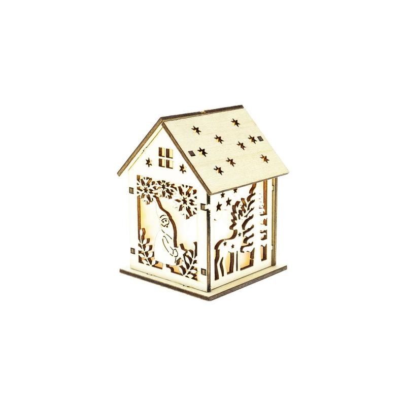 Vánoční dekorace - domeček s jelenem a skřítkem