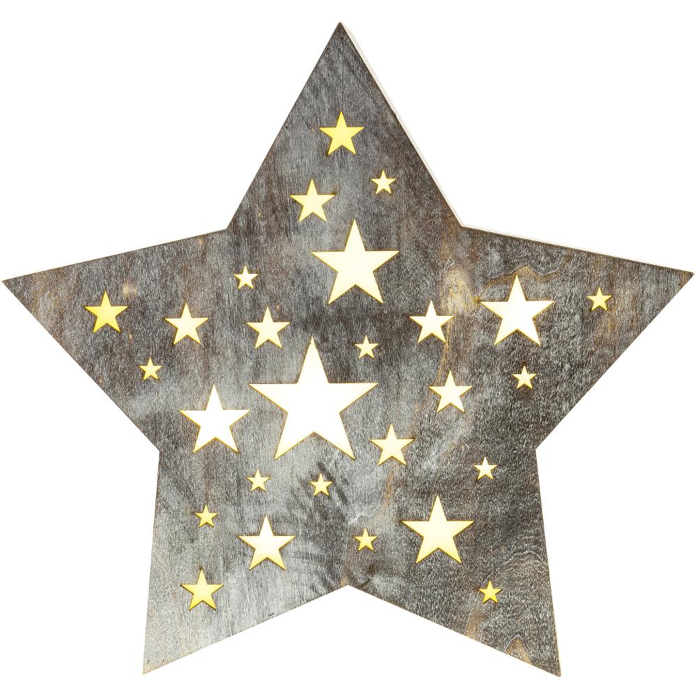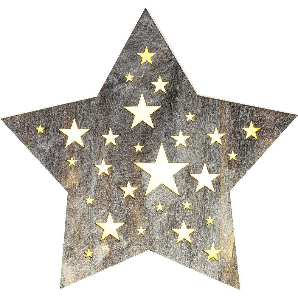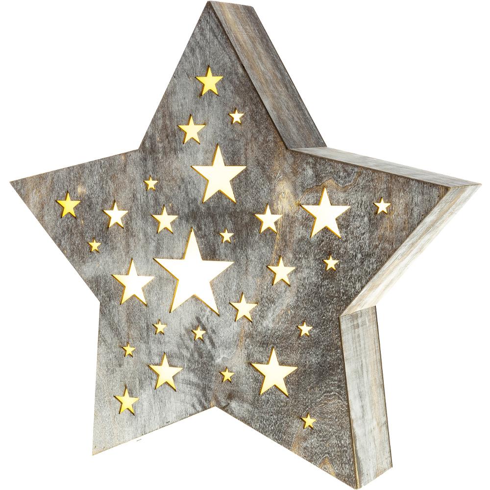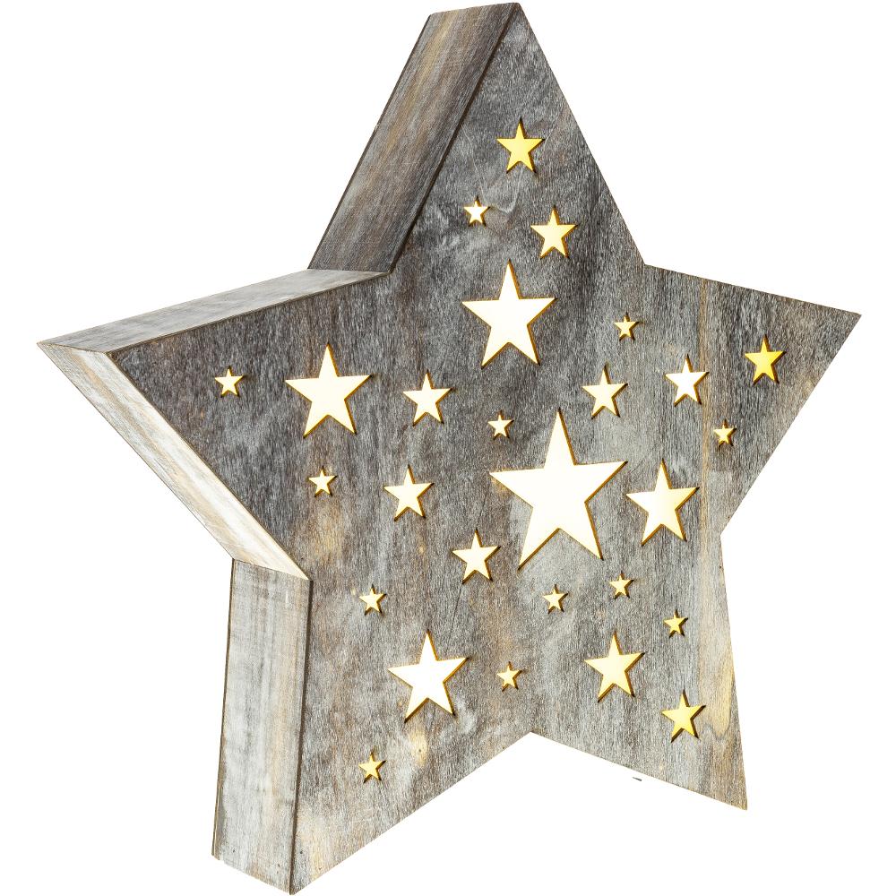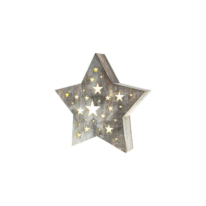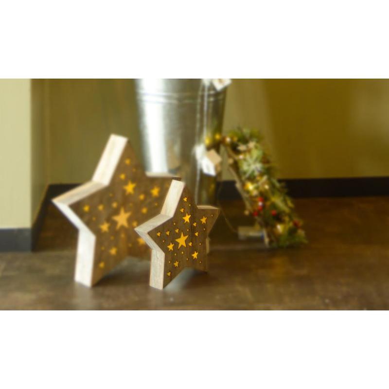 Vánoční dekorace - hvězda dřevěná s perforací ve stvaru hvězdiček