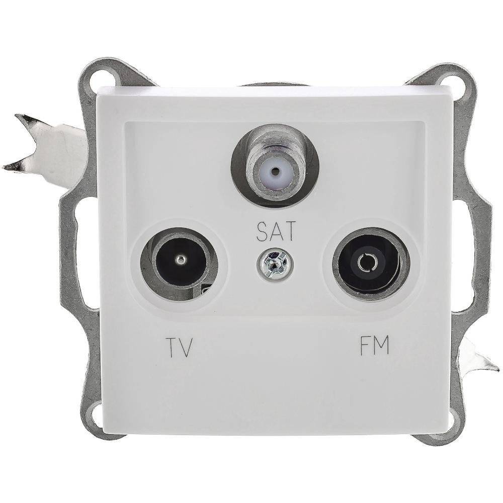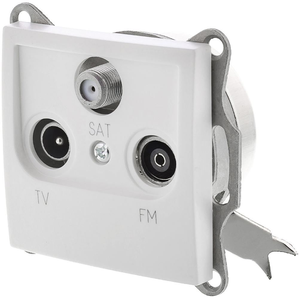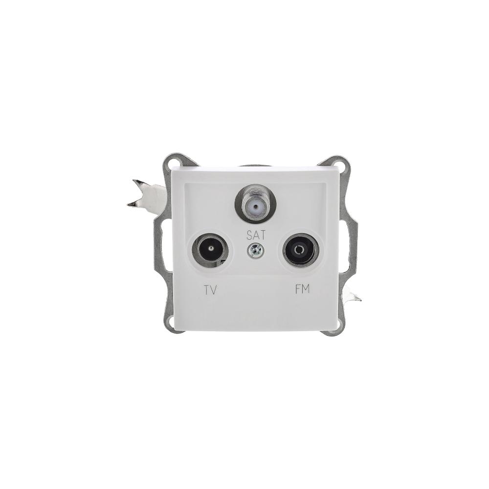 Zásuvka TV+R+SAT řady AMY bez rámečku, průběžná, bílá barva